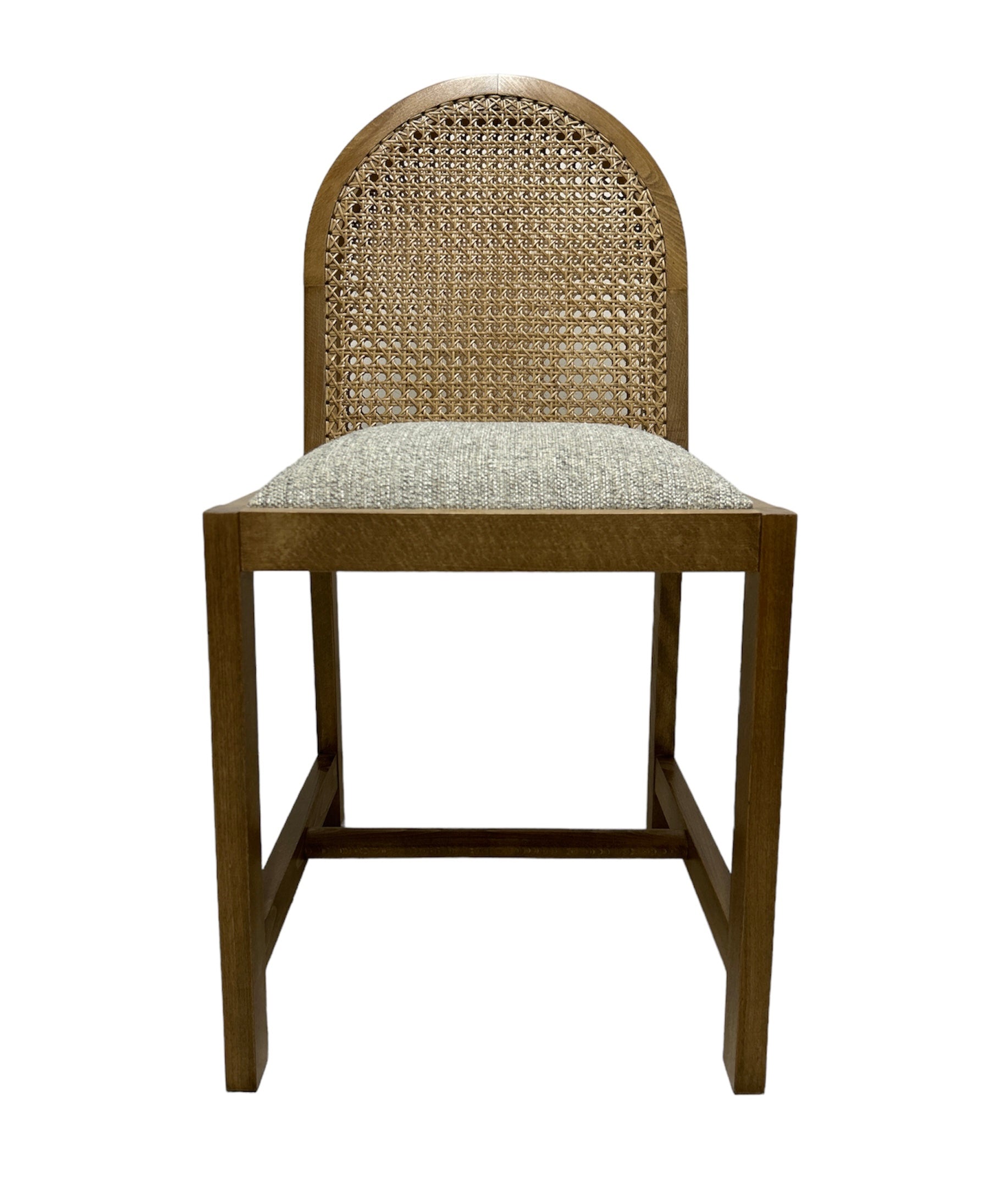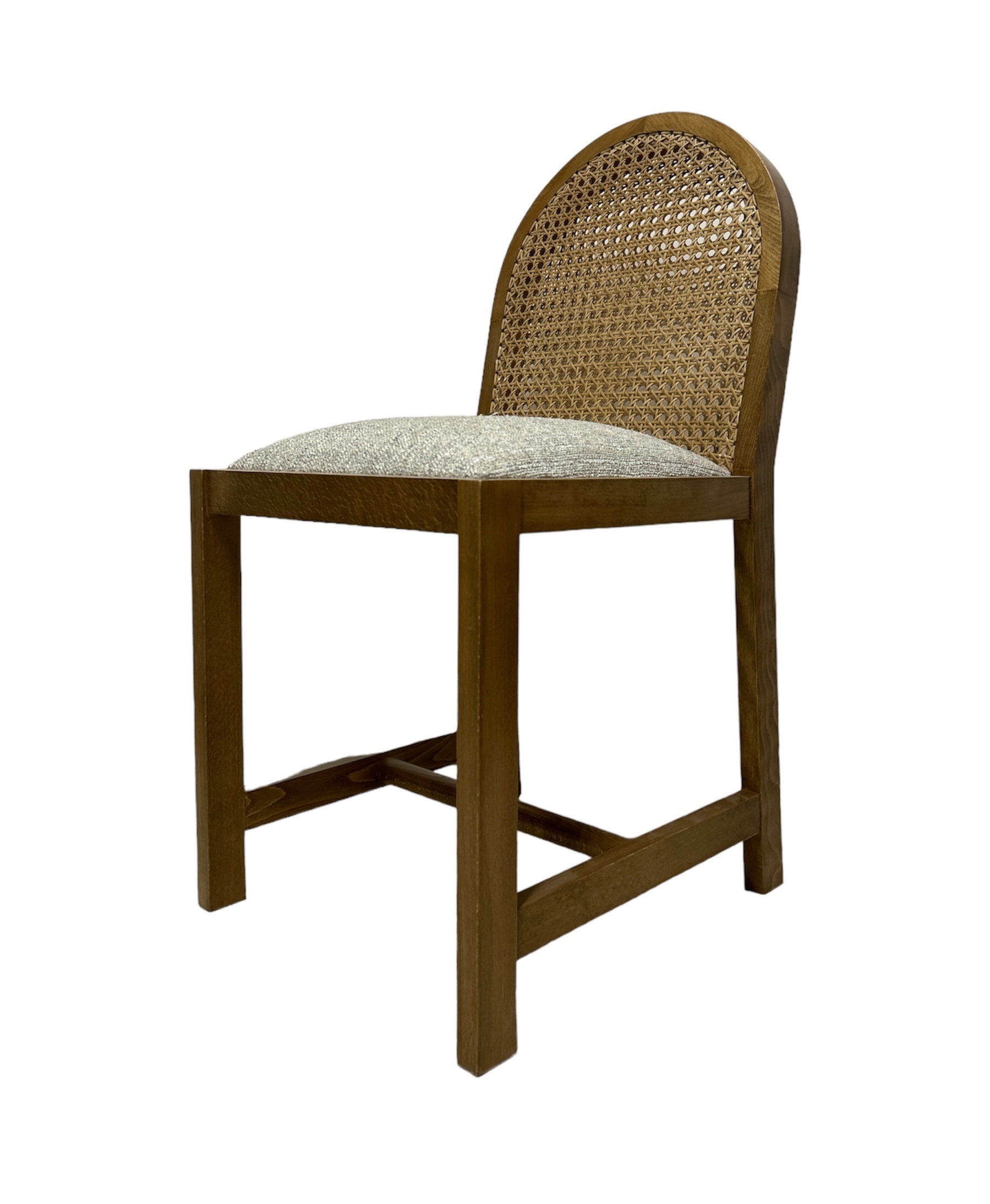 45x45 cm | zan solid wood | mountain grey fabric | Rattan cane webbing backrest